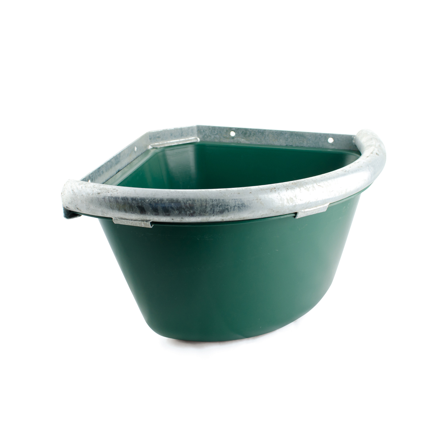 Mangiatoia angolare in plastica con bordo in ferro e tappo sul fondo per pulizia Misura: Unica Colore: Unico Capacità: circa 19 litri
